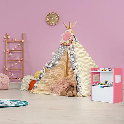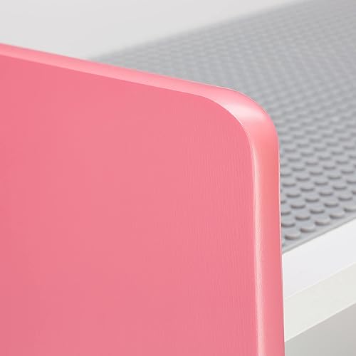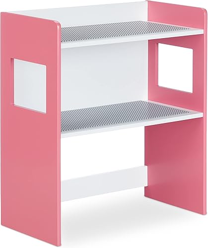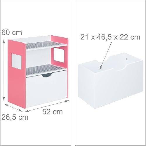 Relaxdays Étagère Enfants, Surface à Briques, Rangement, Roues, HxLxP : 60x52x26,5 cm, Commode Jouets, MDF, Blanc-Rose