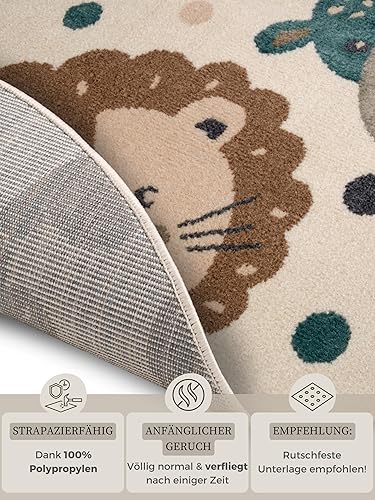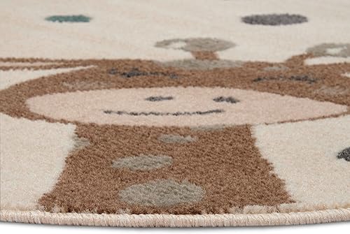 Hanse Home Adventures Tapis Rond pour Enfant - Motif Animaux Lion et Ours - pour Chambre d'enfant, Salle de Jeux, Chambre d'adolescent, Salon - Crème/Marron/Bleu - 100 cm