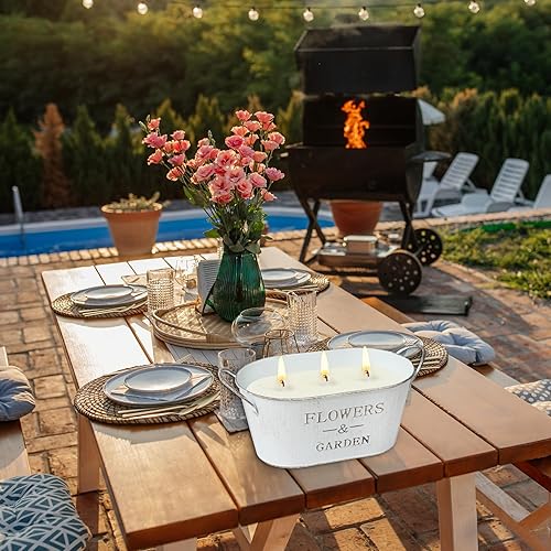 Bougie D'extérieur À La Citronnelle, 30oz Grande Bougie Citronnelle 3 Mèches En Cire De Soja Naturelle Bougies Parfumées Citronnelles Parfait Pour Jardin Terrasse Camping-150h Combustion