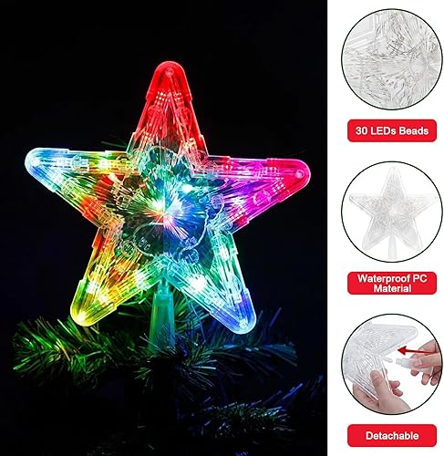 Étoile Sapin de Noel, Étoile Sapin Noel Lumineuse avec 30 LEDs, Étoile pour Sapin de Noël avec 2 Modes, Décoration d'arbre de Noël 9 x 1.57 in, Fonctionne sur Batterie
