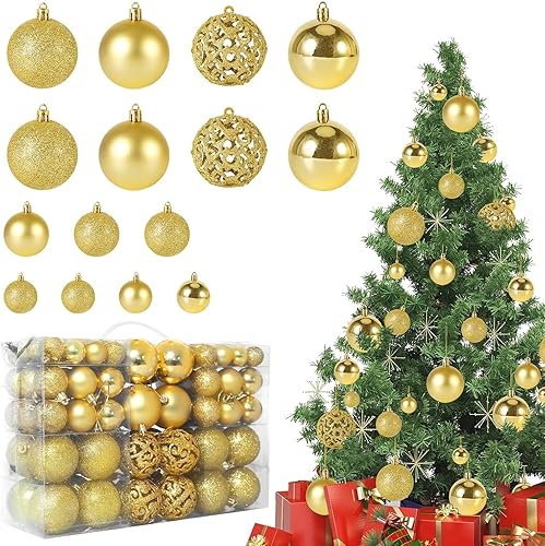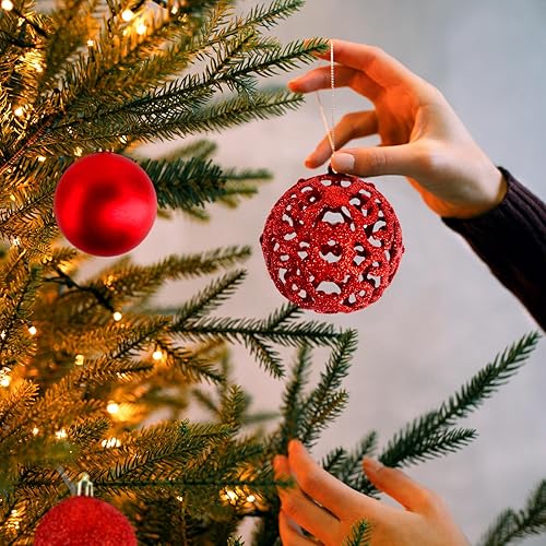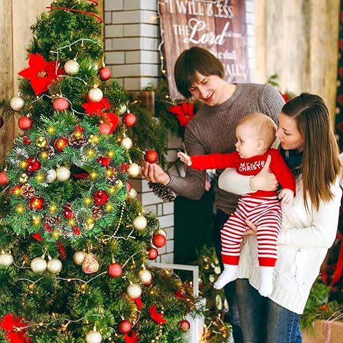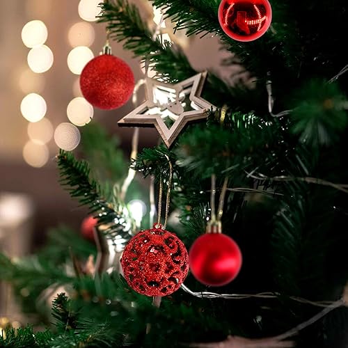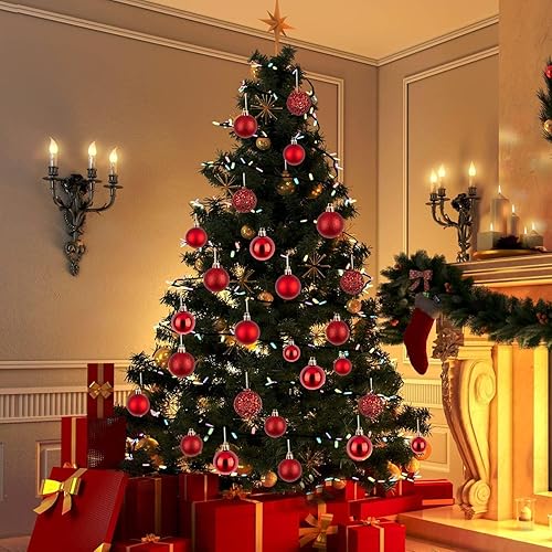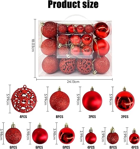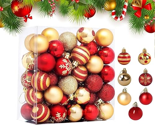 Boule de Noel,50 Pcs Decoration Noel Sapin Boules de Noël avec Boule de Noel Rouge et Or, Mat,Brillant,Decoration Sapin Boules Noel avec Lanière pour Decoration de Noël,Mariage,Fête Anniversaire