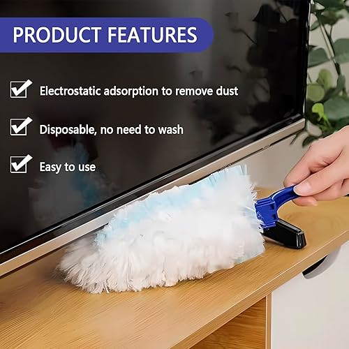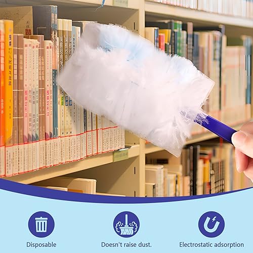 50 pcs Recharges de Plumeaux Jetables Compatibles avec Swiffer Dusters 180 Handle Dusters Recharges pour Plumeau Tête de Remplacement en Vrac avec 1 Poignée Supplémentaire Non Parfumé