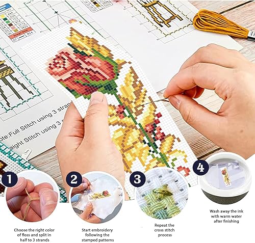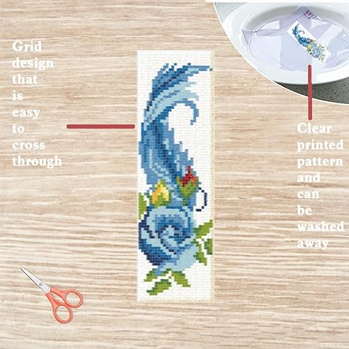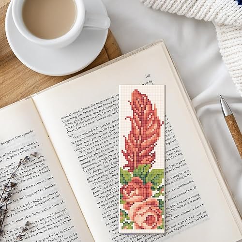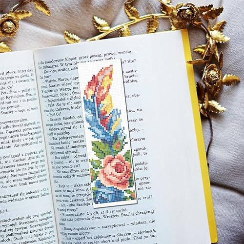 FREEBLOSS 6 ensemble de Kits de Marque Pages au Point de Croix Motif Plumes Kit de Broderie au Point de Croix Kit de Bricolage avec Instructions pour Débutants 6x20cm