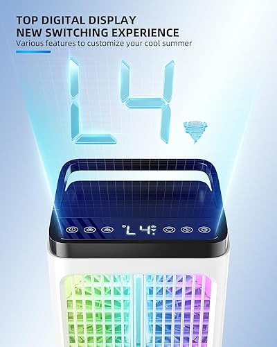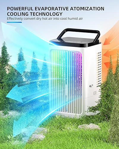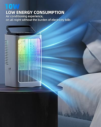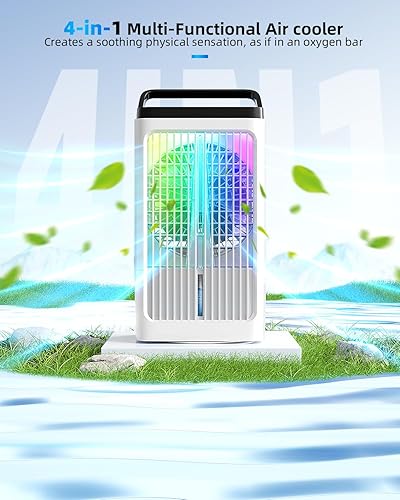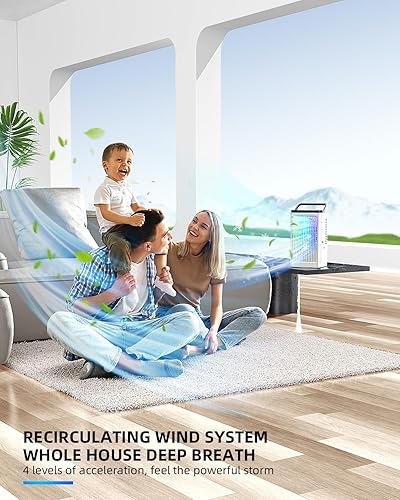 Climatiseur Mobile Mini,SUPOOBE Climatiseur Portable 1200ML,4 en 1 Refroidisseur D'air Silencieux USB Ventilateur,4 Vitesses de Ventilateur/90° Oscillation/2 Modes Brumisation Pour Chambre,Bureau