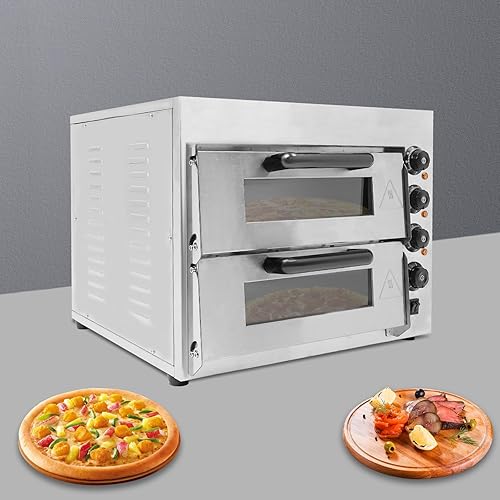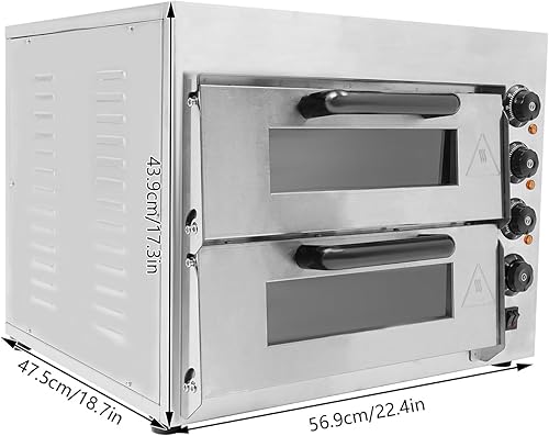 ACROSSPART Four électrique à pizza en acier inoxydable, 3000 W, double four avec minuterie jusqu'à 60 minutes, température jusqu'à 350 °C