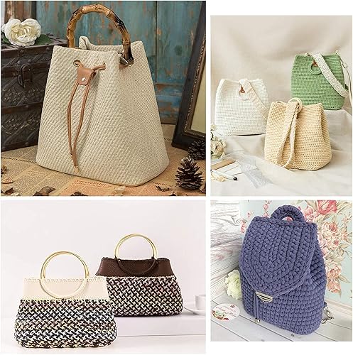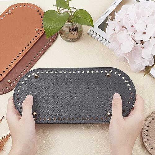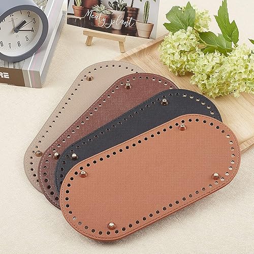 KOMUNJ Lot de 4 sacs inférieurs au crochet - 25 x 12 cm - Sac de fond ovale en cuir pour sacs - Base de coussin avec trous - Sac à bandoulière - Accessoires de bricolage