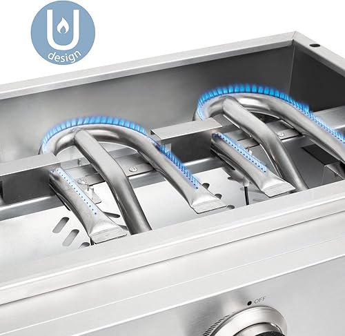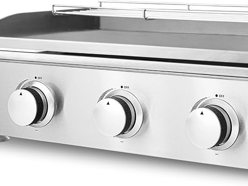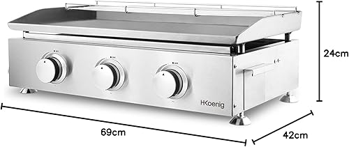 H.Koenig Plancha PLX930 au Gaz 3 Brûleurs U Acier Inoxydable, Alimentation au Gaz Propane ou Butane, Répartition Homogène de la Chaleur, Température réglable jusqu'à 350°C, Pieds Antidérapants