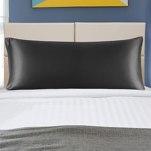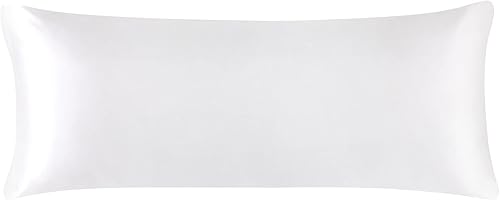 PiccoCasa Taie d'oreiller en satin pour cheveux et peau, housse de coussin longue en satin de soie lisse et doux avec fermeture éclair, blanc, 1,8 m