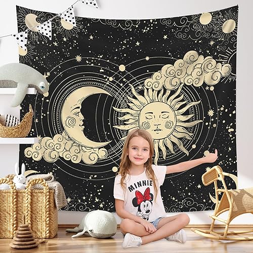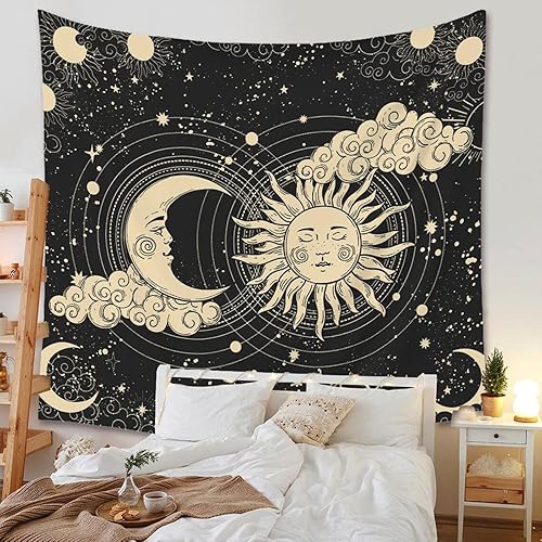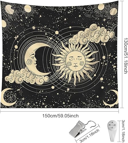 Marjoramy Tapisserie Soleil Lune,Tenture Murale Tapisserie,Tapisserie Murale Lune Et Soleil,Tarot Bannière Tenture Murale Boheme,Pour Chambre Salon Dortoir Fête Tapisserie Murale Décor,130×150cm