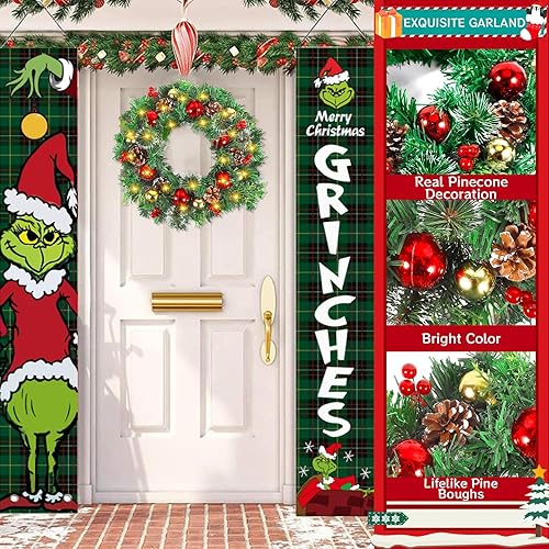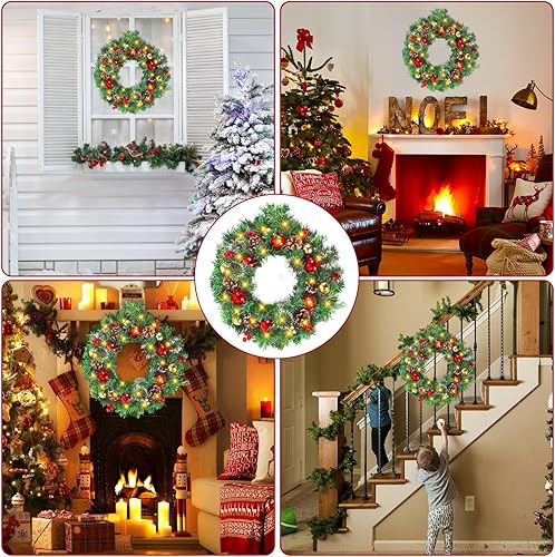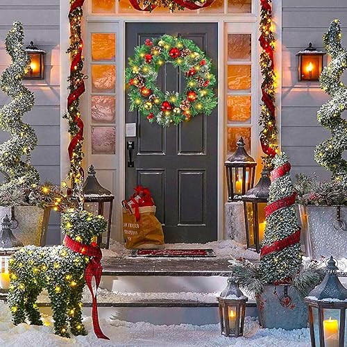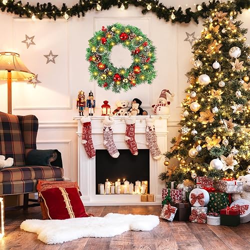 AOUVT Couronne de Noël LED 30 cm - Couronne Décorative de l'Avent Suspendue Artificielle - Décoration de Porte