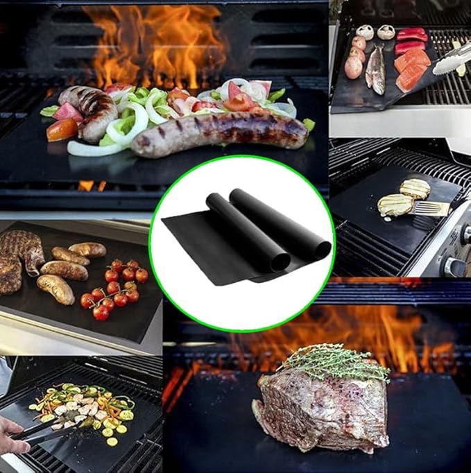 Tapis de Cuisson Réutilisable pour Barbecue/Four/Plancha, 2 Pièces (30x40cm), Antiadhésif, Résistant à 260°C, Sans BPA/PFOS – Pour Gril, Cuisson au Gaz, Charbon et Four