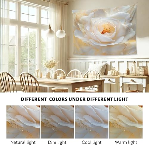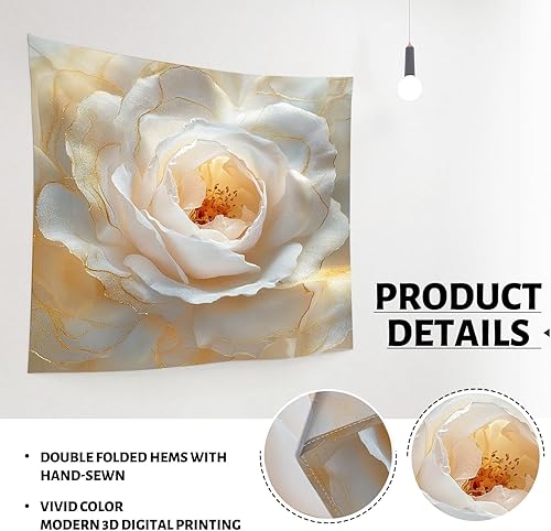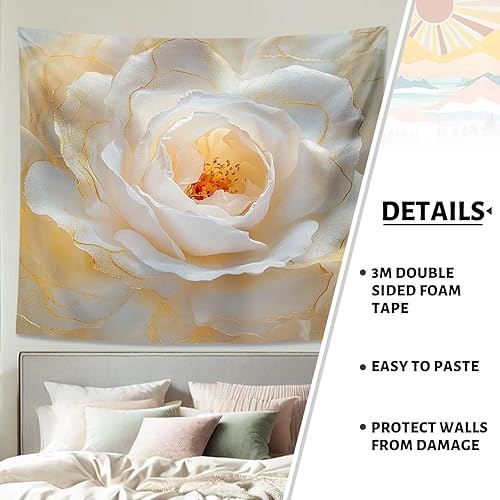 Tapisserie élégante à fleurs blanches, motif floral bohème apaisant, décoration murale, esthétique printanière pour chambre à coucher, salon, cabine 203 x 152 cm