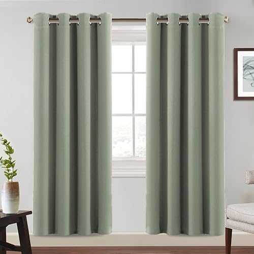BellaHills Rideau Occultant Thermique,2 Panneaux Rideaux Courts Isolant Anti Froid,Vert Sauge,117x137 cm