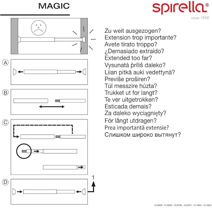 Spirella Barre Tringle pour Rideau de Douche ou Baignoire Extensible sans perçage en Alu Magic 125-220cm Finition Brillante Chromé