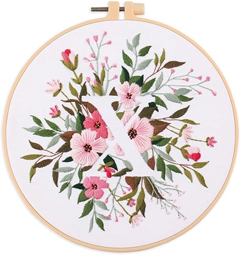 Abillyn Kit de broderie au point de croix Lettre G et fleurs estampillées avec motif imprimé (lettre G)