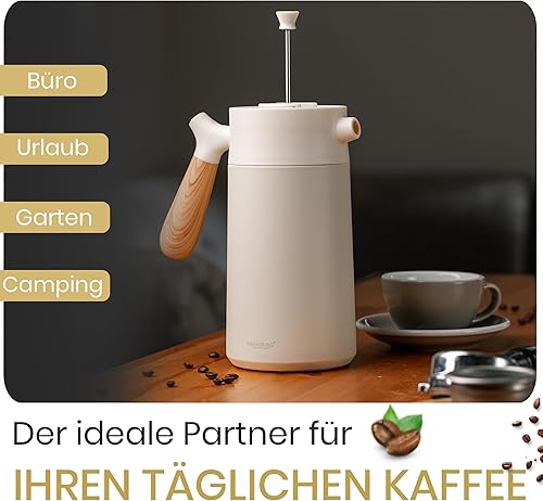 HEEMBURG Cafetière à piston French Coffee Press 1 l - Thermos en acier inoxydable de qualité supérieure avec filtre supplémentaire - Cafetière isolée à double paroi pour un café et un thé parfaits