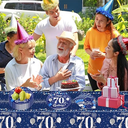 70 ans Nappe Anniversaire en Plastique, Bleu et Argent Nappe Fête 70 ans Anniversaire, Nappe Happy 70th Birthday 137x274cm Couverture Rectangulaire Nappe Party Linge de Table à Manger Cuisine Banquet