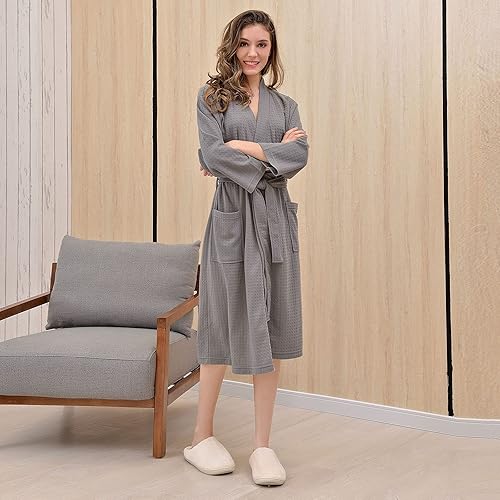 Avrilight Peignoir Femme Nid D'Abeille Gaufré Léger Vêtements de nuit de Chambre Unisexe Peignoirs de Bain pour Spa Hôtel (Gris, XL)