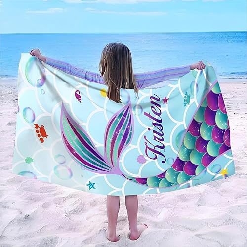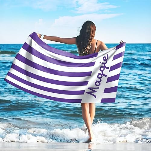 SearchI Serviette de Plage Personnalisée avec Nom/Texte,Couverture de Plage Légère,Anti-Sable et à Séchage Rapide,Serviette de Plage en Microfibre,Cadeaux Personnalisés(76x152cm,Dinosaures 2)
