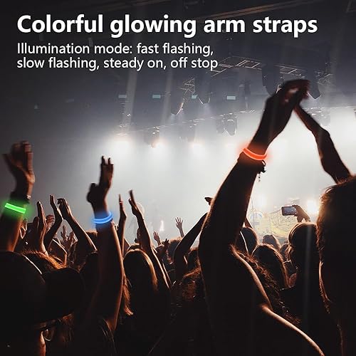Lot de 8 bracelets lumineux à LED, bracelet LED lumineux et clignotant, bracelets clignotants dans l'obscurité pour concerts, festivals, sport, camping, fêtes, nuit, événements sportifs, [One Size