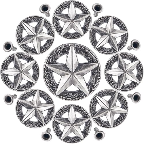 GORGECRAFT 40 Rivets Étoiles 2 Styles Pentagramme Argenté Antique à Cinq Branches en Métal pour Artisanat du Cuir Rivets Décoratifs pour Vêtements Portefeuilles en Cuir Ceintures Gilets Sacs Bottes