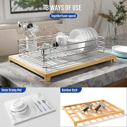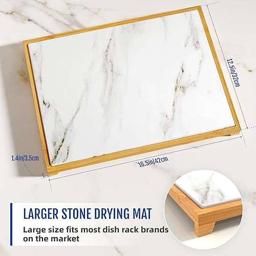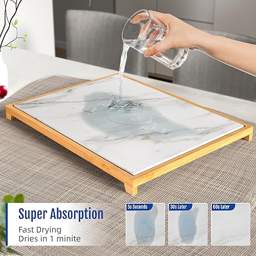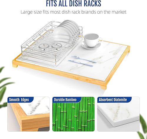 Tapis Séchage Absorbant,Tapis Séchage en Pierre Pour Comptoir Cuisine, Tapis Vaisselle en Bambou,Tapis Terre à Diatomées Pour Comptoir Cuisine(42 x32cm)