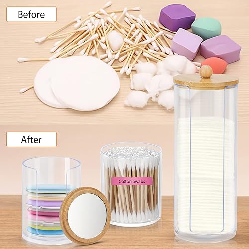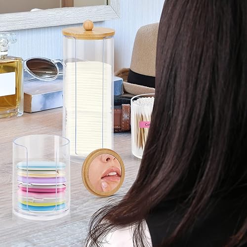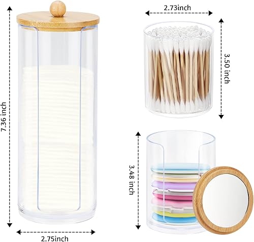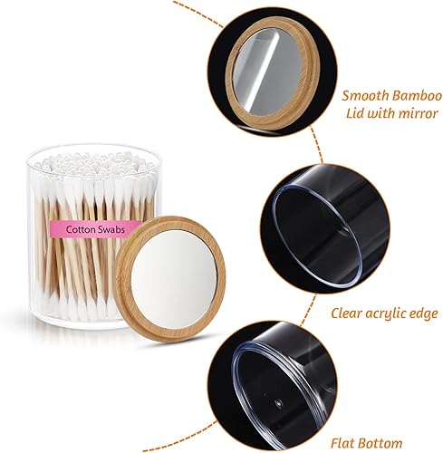 Oziral Lot de 3 Supports Qtip pour Salle de Bain pour Rangement Distributeur de Coton Tige en Acrylique avec Miroir Conteneur Rond pour Vanité Petit Conteneur Qtip Organisateur Maquillage