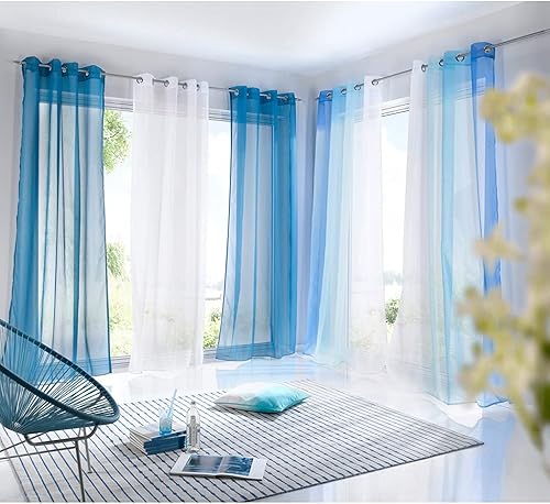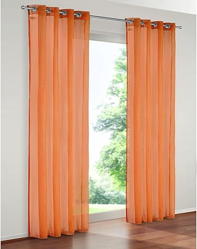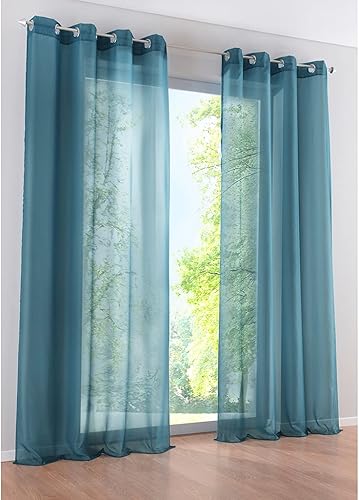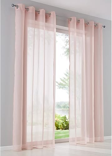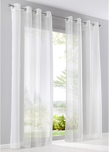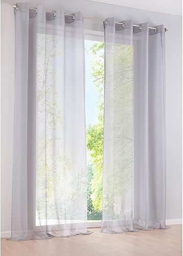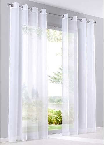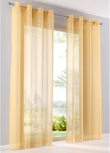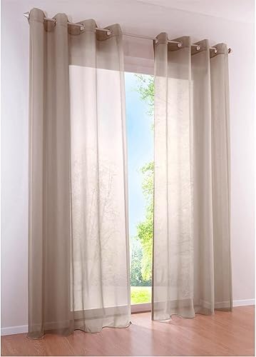 Gardinenbox Voilage Filet Rideau Oeillets Uni Transparent Filet Rideau décoratif Structure, 20352, Polyester, Naturel, 245 x 140 cm