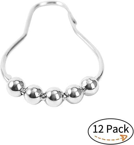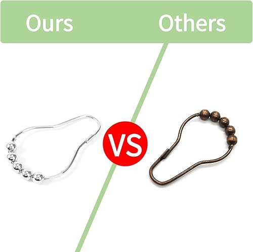 Miorkly Crochets de Rideau de Douche, Anneaux pour Rideaux de Douche Crochet en Métal Coulissant Acier Inoxydable 12pcs
