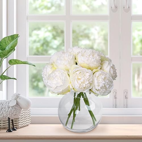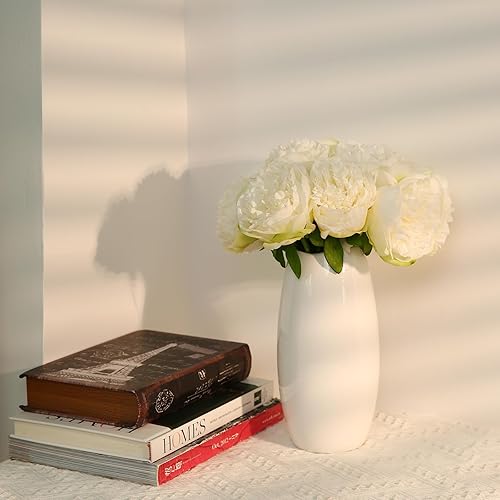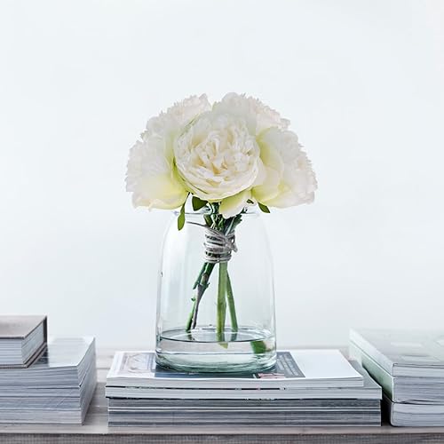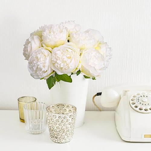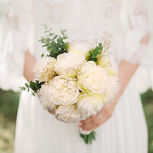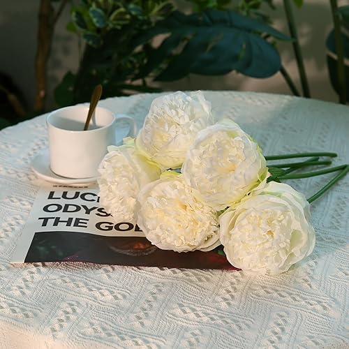 Tuocal Lot de 2 bouquets de pivoines artificielles en soie à tige unique pour mariage, maison, fête, centre de table, arrangement floral, hôtel, bureau, blanc crème