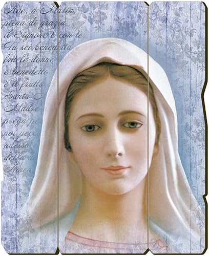 Fratelli Bonella | Tableau en bois moulé style vintage de Notre-Dame de Medjugorje f.to19x24 cm | Made in Italy
