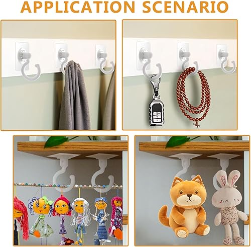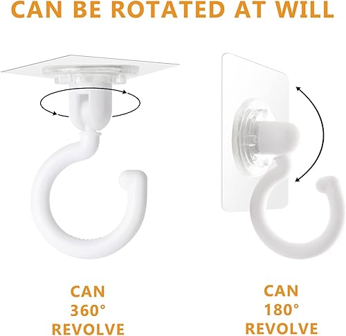 HEOUCH 10 Pièces Crochet Plafond Sans Percer, 360° Pivotants Crochet Adhesif Mural, Crochet Adhésif Extra Fort, pour Suspendre des Clés, et des Vêtements sur des Surfaces Lisses et Plates
