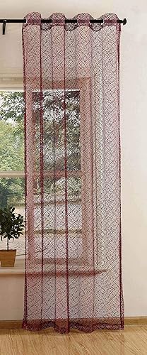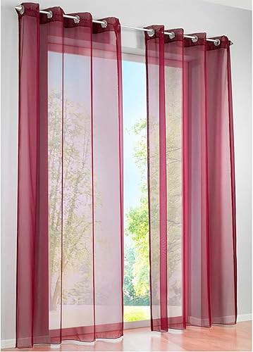 SMITHOOM Lot de 2 Rideaux Voilage à Oeillets Classique Couleur Unie Translucide Voilage pour Salon Décor Chambre Enfant Balcon Cuisine, Rouge, 140x245cm