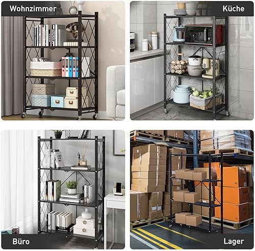 Vichirskit Étagère Rangement Verticale Pliante 4 Étagères - 72 x 34 x 120 cm - Ouverture Intégrée sans Montage ,Grande Capacité - Organisateur de Stockage Multifonction pour Maison/Bureau