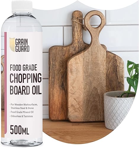 GRAIN GUARD Huile pour Planche à Découper | 500ml | Huile Minérale Alimentaire | Idéale pour Planches à Découper en Bois, Surfaces en Acier Inoxydable et en Pierre | Inodore et Insipide