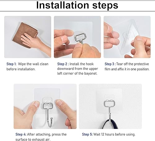 WJUAN 15 Crochets Adhésifs Transparents - Crochets en J Autocollants pour Carrelage, Verre & Métal - Fixation Sans Percer - Solution Discrète