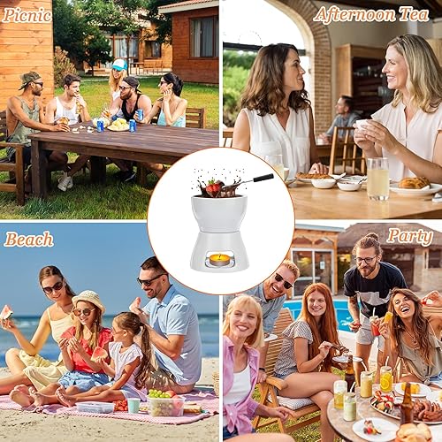 Lot de 2 chauffe-beurre en céramique avec 8 fourchettes, bol à fondue en porcelaine blanche pour fromage, caramel, tapas