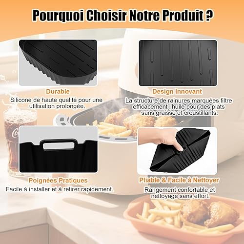 Moule Silicone Air Fryer 23 cm, 2 Pièces Plat Air Fryer Accessoires pour Philips 2000 Série NA230 XL 6,2L, Silicone Accessoires Air Fryer pour Cosori TurboBlaze 5,5L/6L/6,2L, Airfryer Accessoires