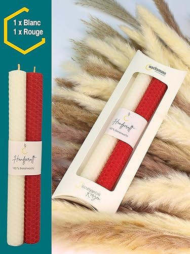 Wachsmann Lot de 2 bougies en cire d'abeille roulées à la main, 100 % cire d'abeille, dans de nombreuses couleurs, fabriquées en Allemagne