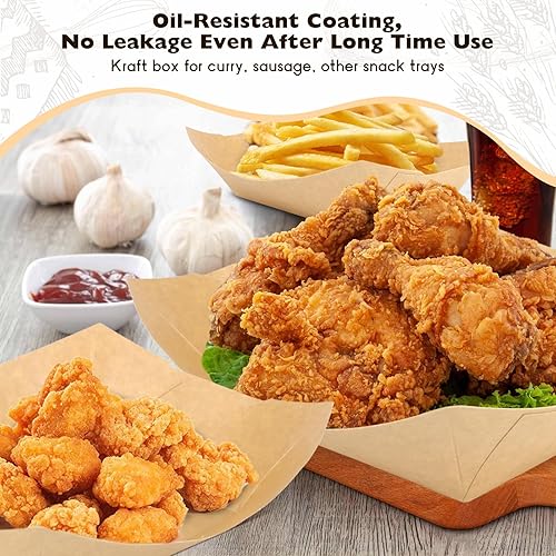 50 Pièces Barquette Frite,Barquettes en Carton Kraft,Boîte en Papier Kraft pour Salade,Frites Curry Intestin Salade Barbecue Sushi Snack