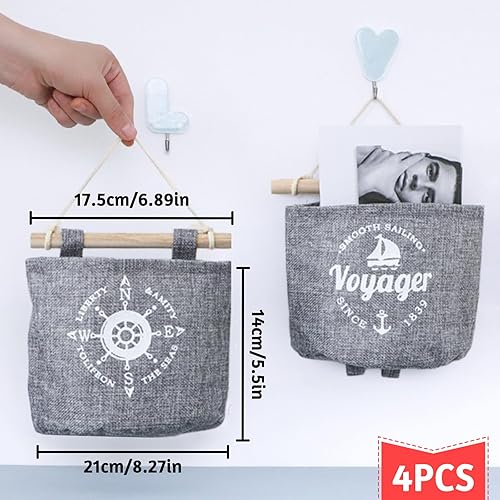 JJQHYC 4 Pièces Sac de Rangement Suspendu Porte Style Maritime Sac à Suspendre Gris Poche Suspendue Mural Organisateur pour Salle de Bain