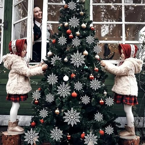 AcnA 30 Pièces Flocon de Neige Decoration, Décorations à Suspendre avec Flocon de Neige, Flocon de Neige Decoration d'arbre de Noël, Décorations de Noël (Argent)