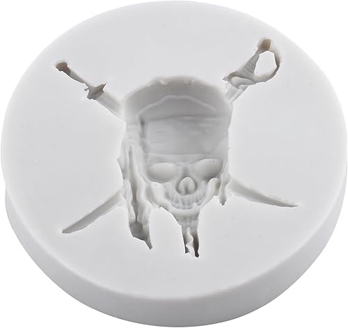 Sijiangmold Moules en silicone pirate tête de mort moule à fondant pour décoration de gâteau d'Halloween chocolat cupcake toppers bonbons argile polymère pâte en caoutchouc