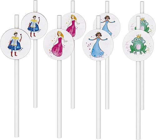 CAM ET LEON - Accessoires Décoration d’Anniversaire Enfant - Thème Princesses - Assiettes, Gobelets, Serviettes, Confettis, Sachets, Cartes d’Invitation (Paille x8)