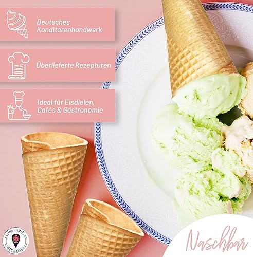 Cornets pour 1-2 cuillères de crème glacée | 130x50mm | 42 piéces | Gaufres croustillantes dans les glaciers de la meilleure qualité