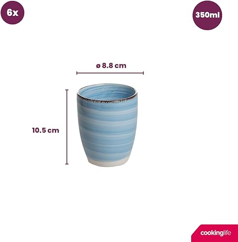 FUN ELEMENTS FE Lot de 6 ramequins en céramique pour crème brûlée Motif dentelle gaufrée Bleu 240 ml