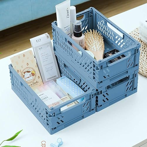 Tuevob Lot de 4 boîtes de rangement pliables en plastique - Pour la maison, le bureau, la chambre à coucher, la cuisine - Bleu