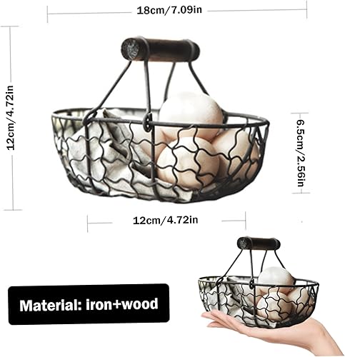 Wedhapy Panier à œufs Vintage Petit Porte œufs en métal avec poignée Panier de Rangement de Cuisine Rustique Noir Organisateur de comptoir pour œufs Frais Pain Fruits légumesPanier à œufs Porte œuf