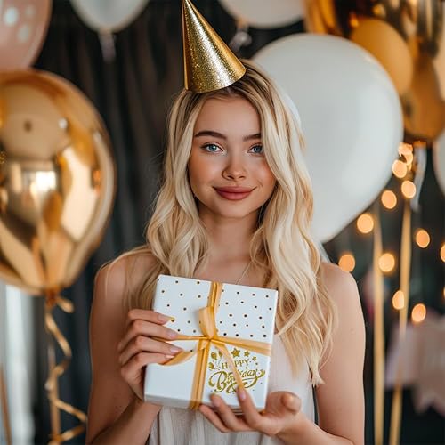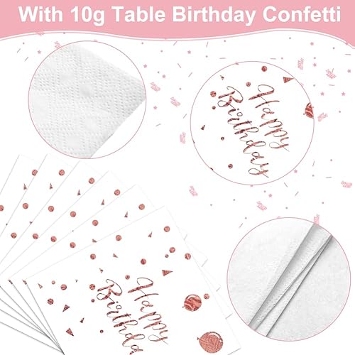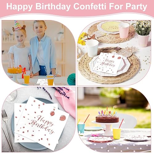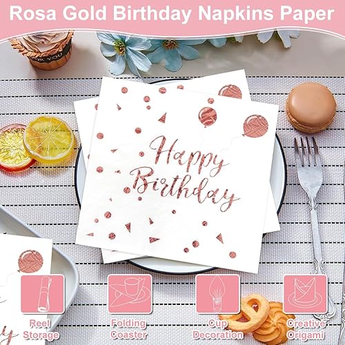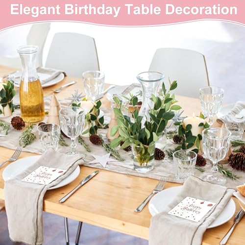 DOUSELLA 40 PCS Serviettes Joyeux Anniversaire Serviette Papier Anniversaire Rose Gold Serviettes HAPPY BIRTHDAY Serviette de Table Anniversaire Fille avec Confettis de Table pour Fêtes Dîner, Blanc