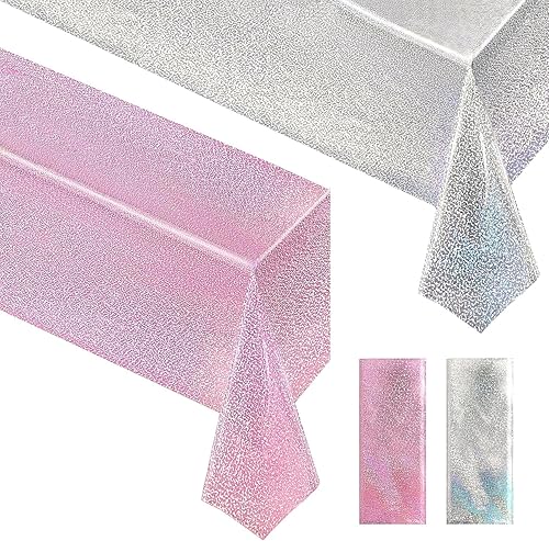 PalePink & Silver Nappe holographique 130 cm x 250 cm Rose vif Décoration de fête Saint-Valentin Fête d'anniversaire Décoration de table en plastique jetable Nappe de table en plastique pour fête